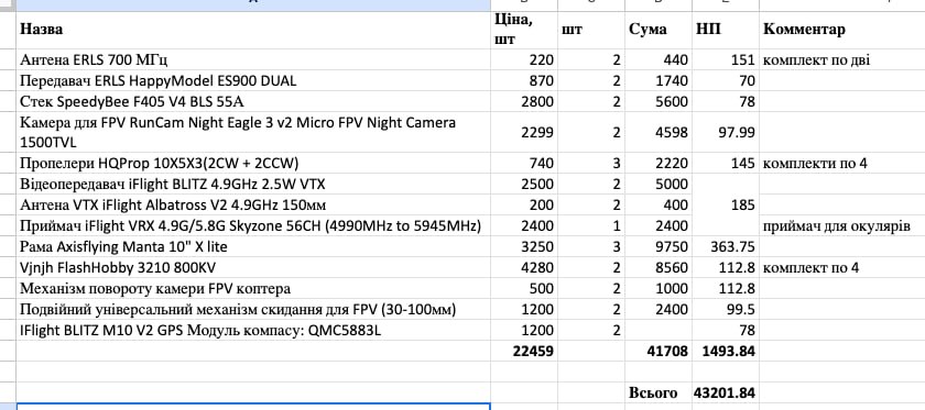 Thanks to your donations (Pavlo, respect to you again, my friend), we will deliver kamikaze drones: one 7-inch, one 8-inch, and two 10-inch units.