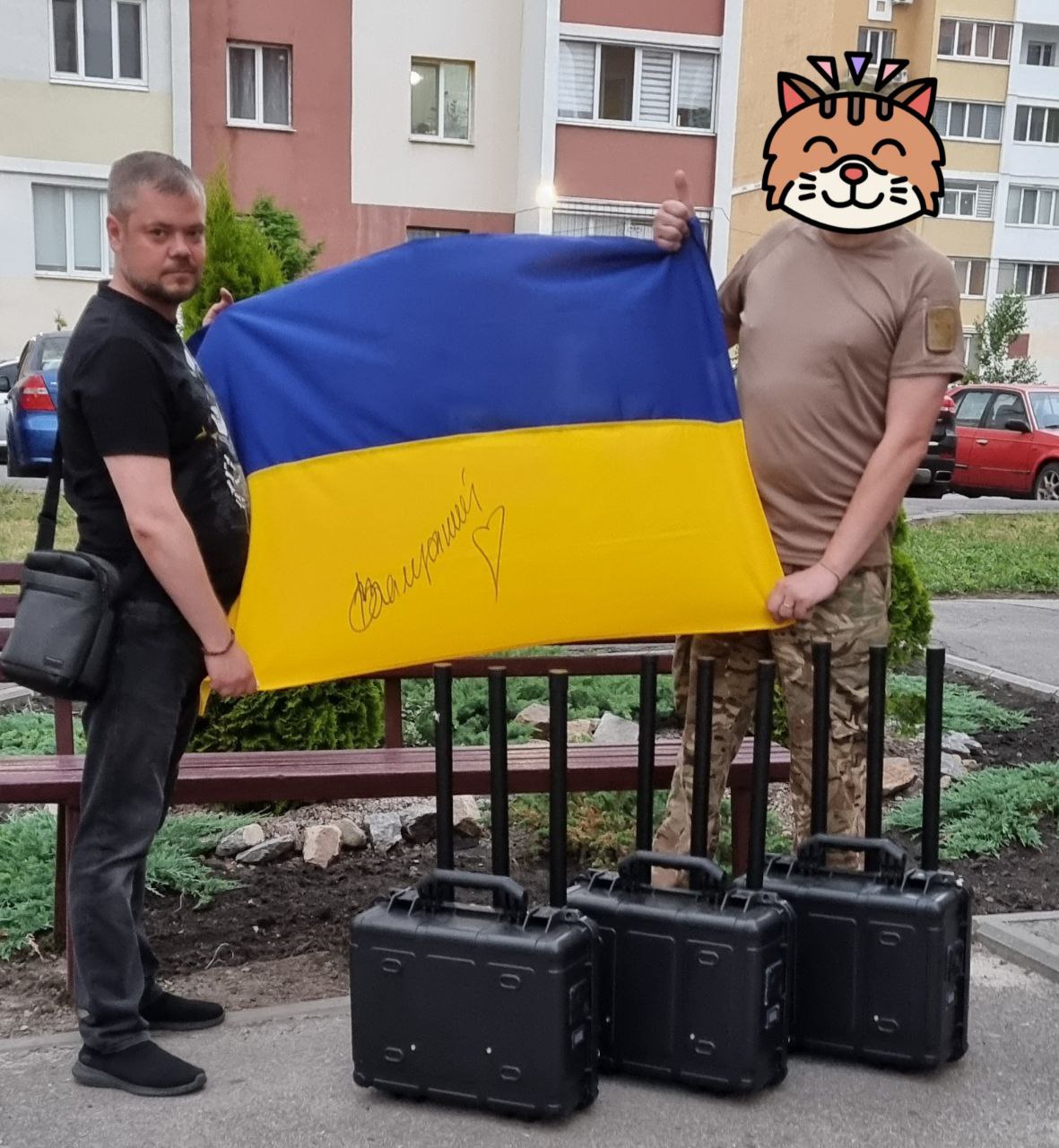16.06.2024 – Завдяки анонімному меценату передали сьогодні перші три з семи систем постановлення радіоперешкод, тобто РЕБи, для прикордонників, що саме зараз воюють на кордоні Харківської області, а саме РУБПАКи «Sky Lords» та «QUICK DEATH». Впродовж тижня буде ще 4 комплекси. Хай бережуть хлопців…