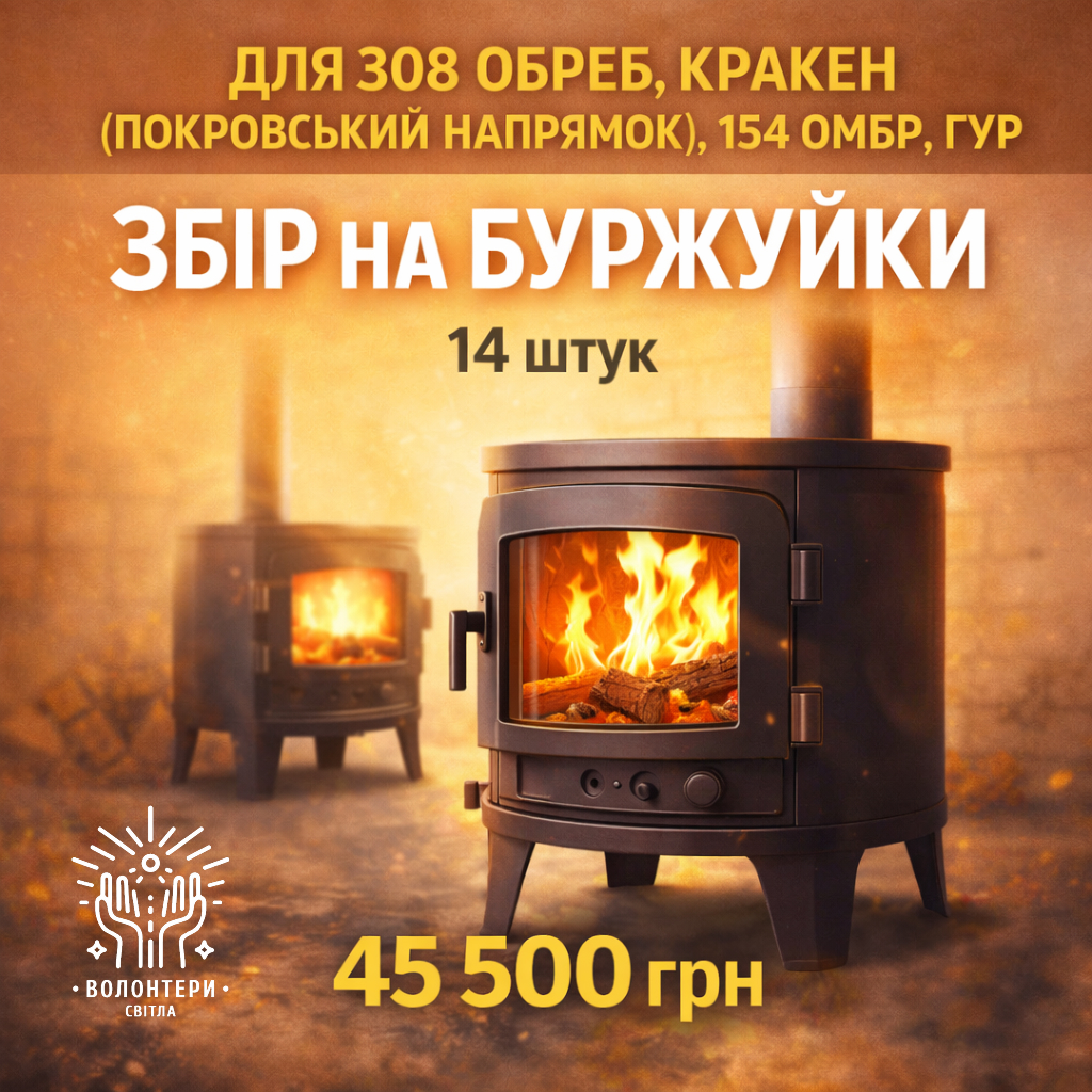 Друзі, цей новий збір на буржуйки буде останнім цієї зими і, я сподіваюсь, взагалі останнім. Тож, збираємо на 14 буржуйок 45500 гривень. Разом ми зможемо подарувати тепло, сухий одяг і гарячі страви нашим Захисникам.”