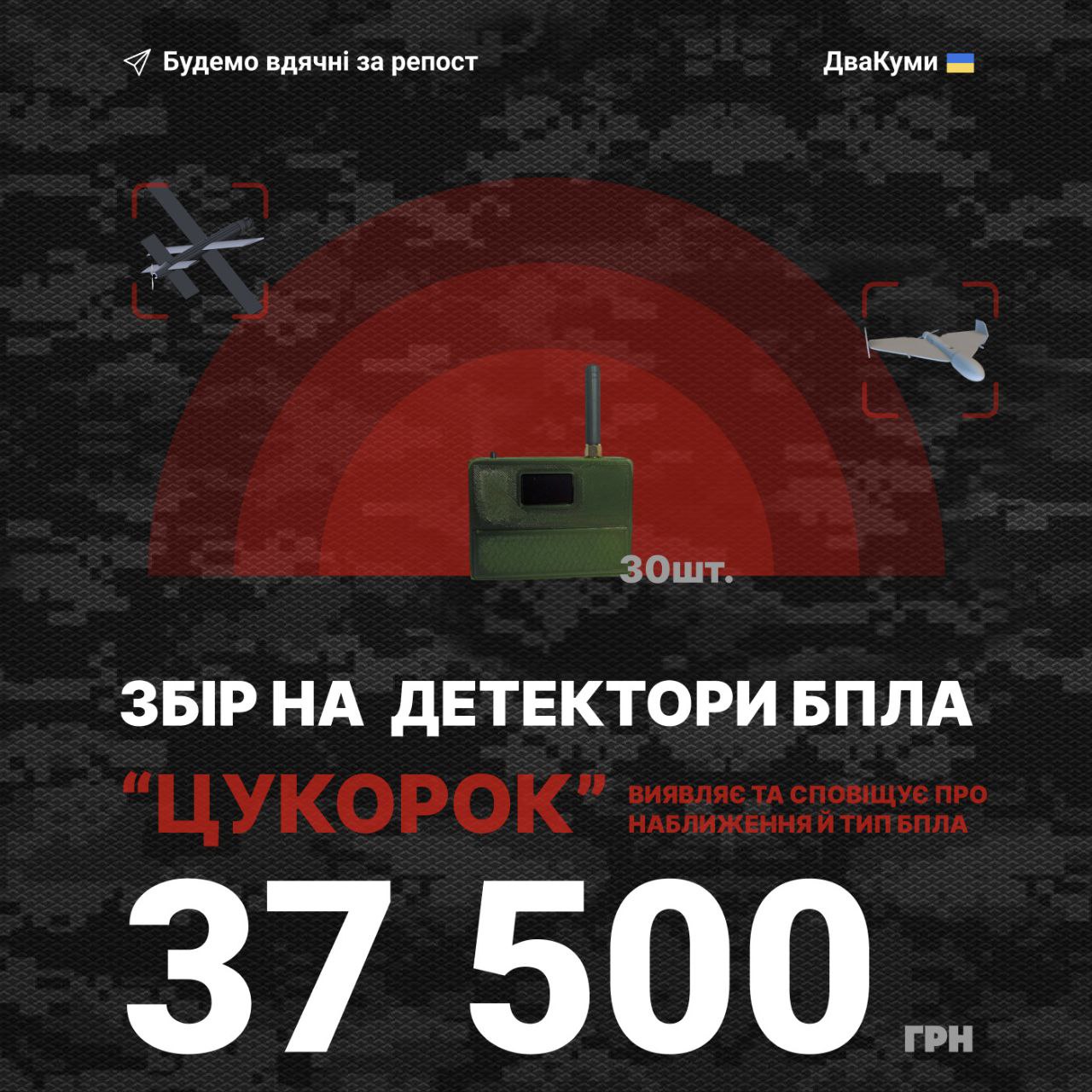 “Ще відкрили надважливий збір на детектори БПЛА Цукорок. Замовили 30 штук, щоб розподілити серед усіх наших підрозділів. Загальна сума 37.500 грн.