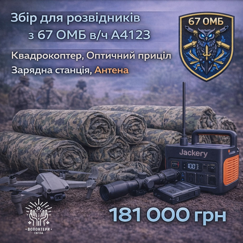 Збираємо для розвідників з 67 ОМБ в/ч А4123 1️⃣ Квадрокоптер DJI Mavic 3 Pro 2️⃣ Оптичний приціл Sig Sauer Optics Tango MSR LPVO 1-8×24 SFP MSR BDC-8 Illum 3️⃣ Зарядна станція EcoFlow DELTA 2 4️⃣ Антена підсилювач сигналу Alientech Duo II 2.4G/5.8G