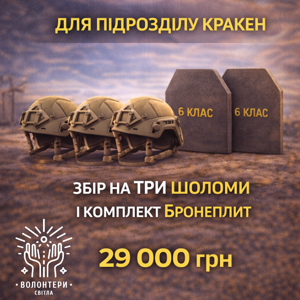 Збір на три шоломи і комплект бронеплит для наших друзів, для побратимів з Кракена.