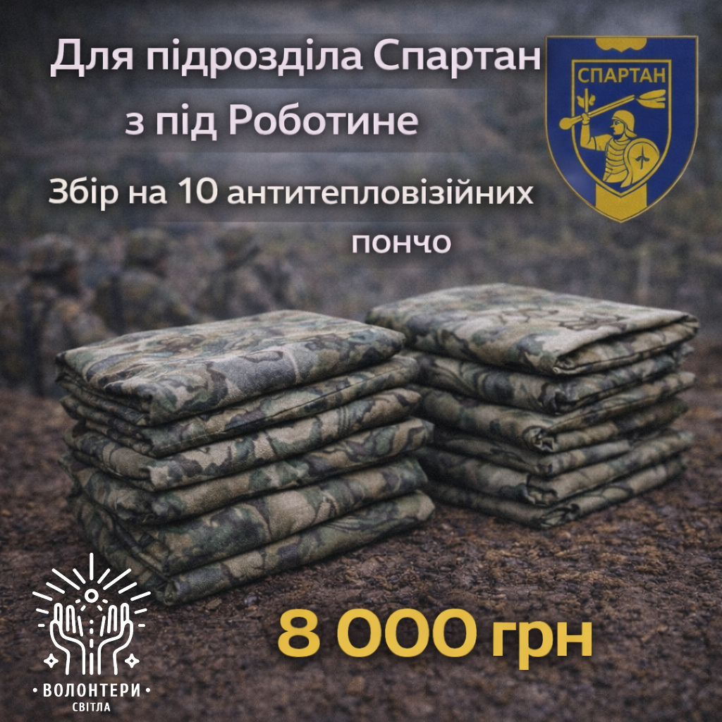 Збір на 10 антитепловізійних пончо для хлопців зі Спартана, що боронять Роботине.